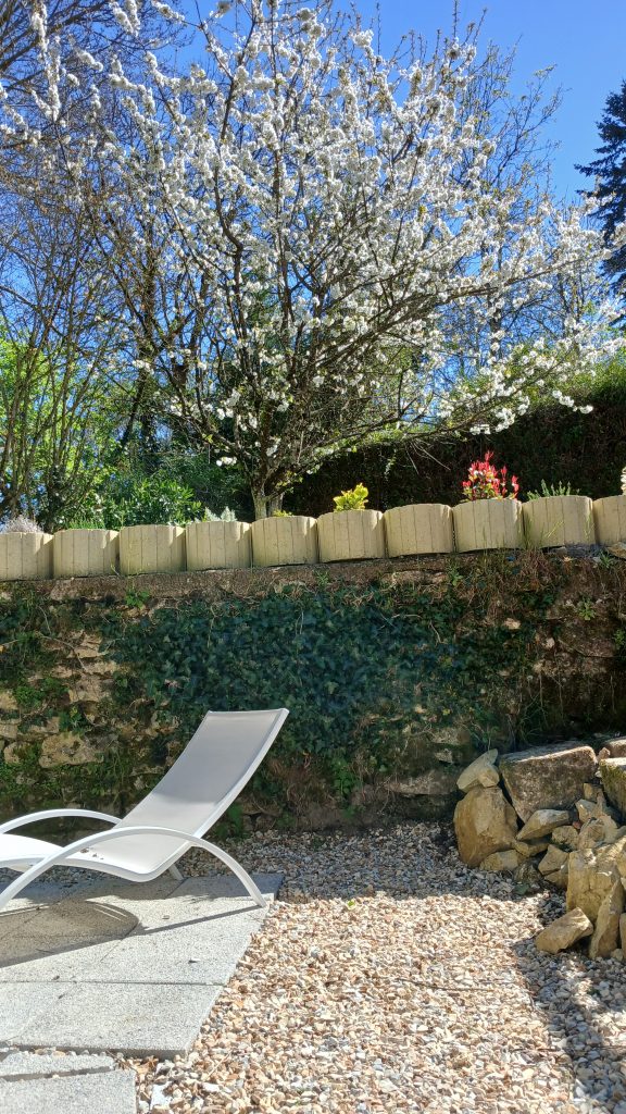 Pour maximiser votre confort, profitez en hiver de la chaleur du poêle à bois. En été, la porte vitrée vous permet d’accéder à la grande terrasse fleurie exposée plein sud.